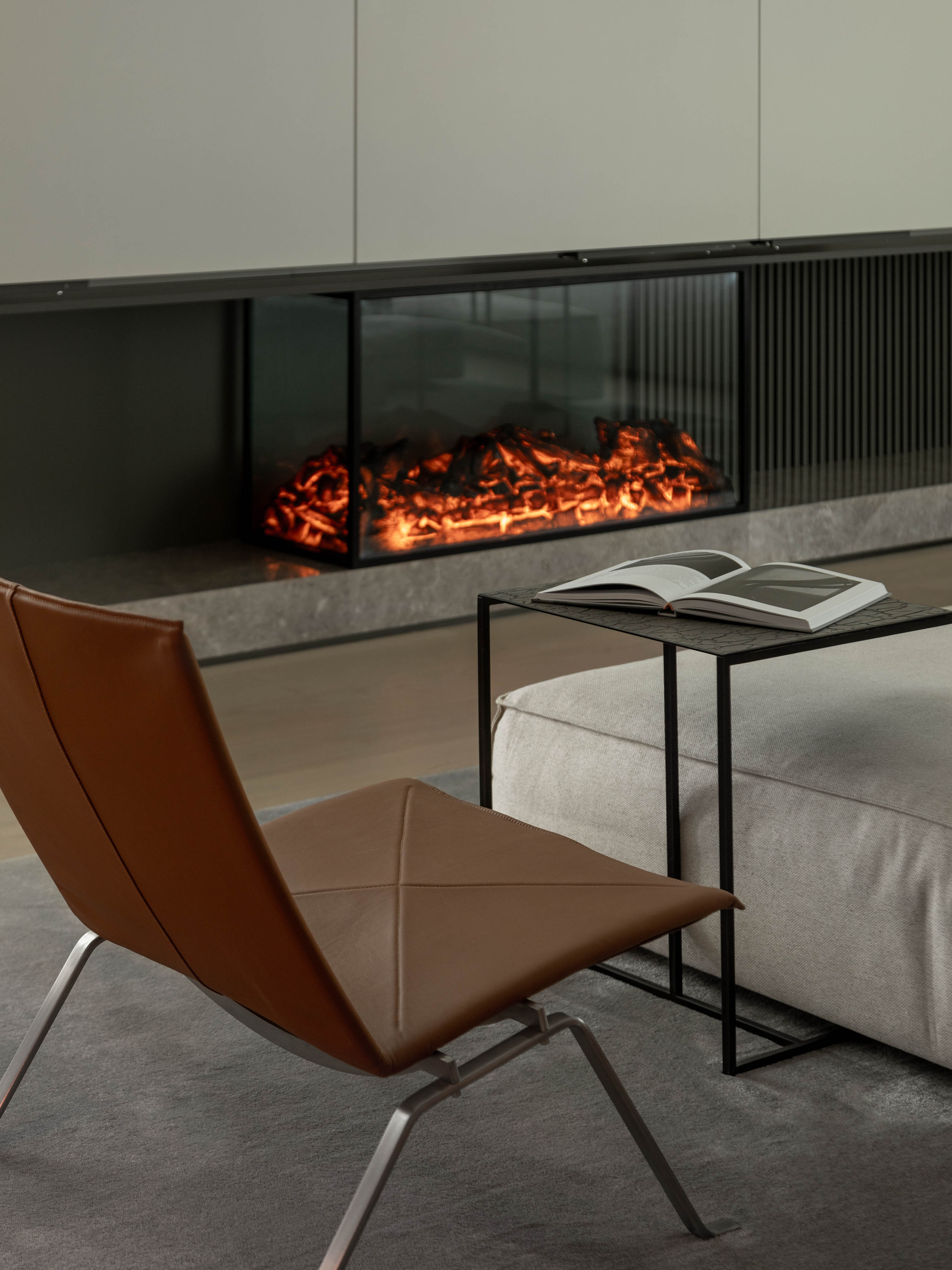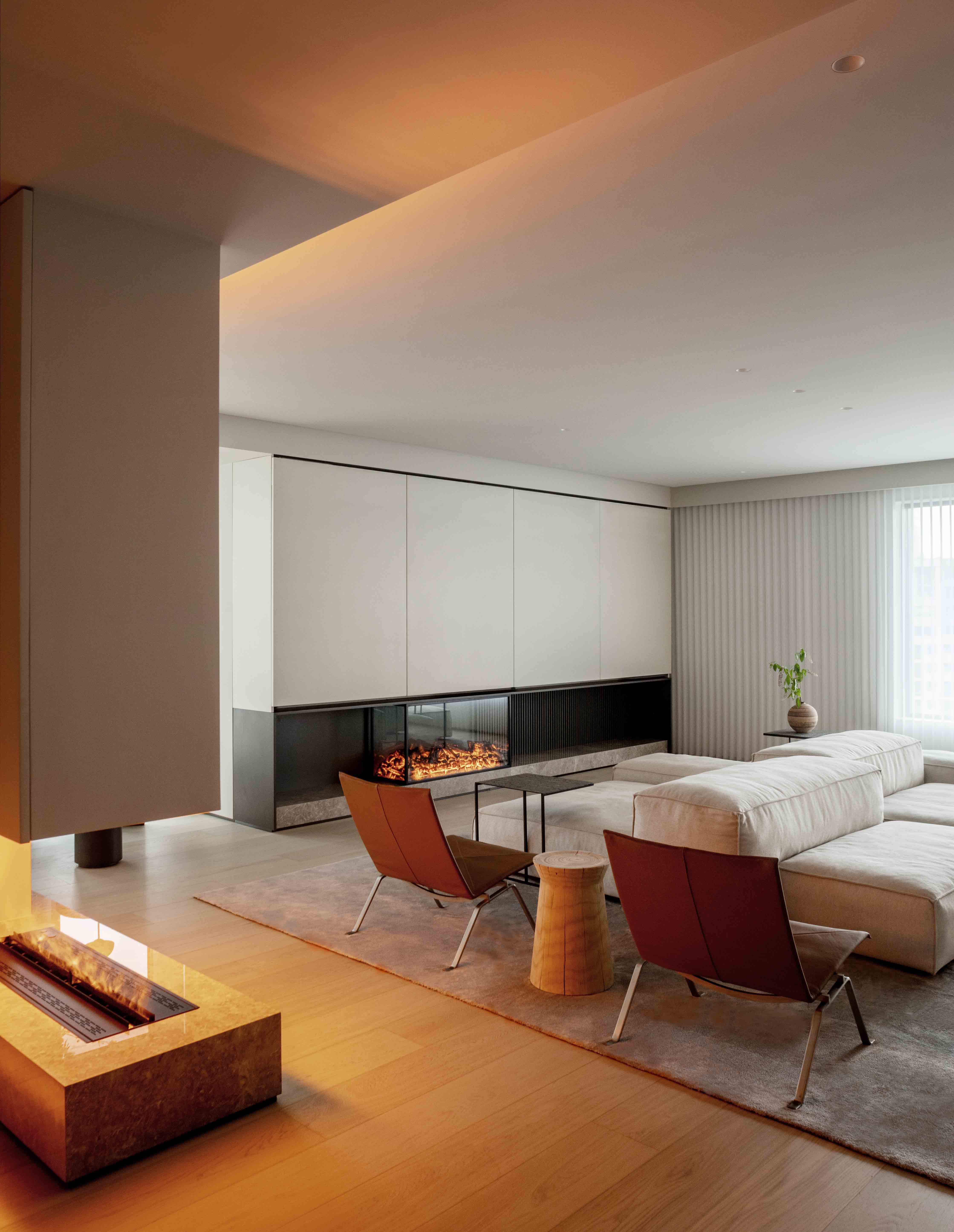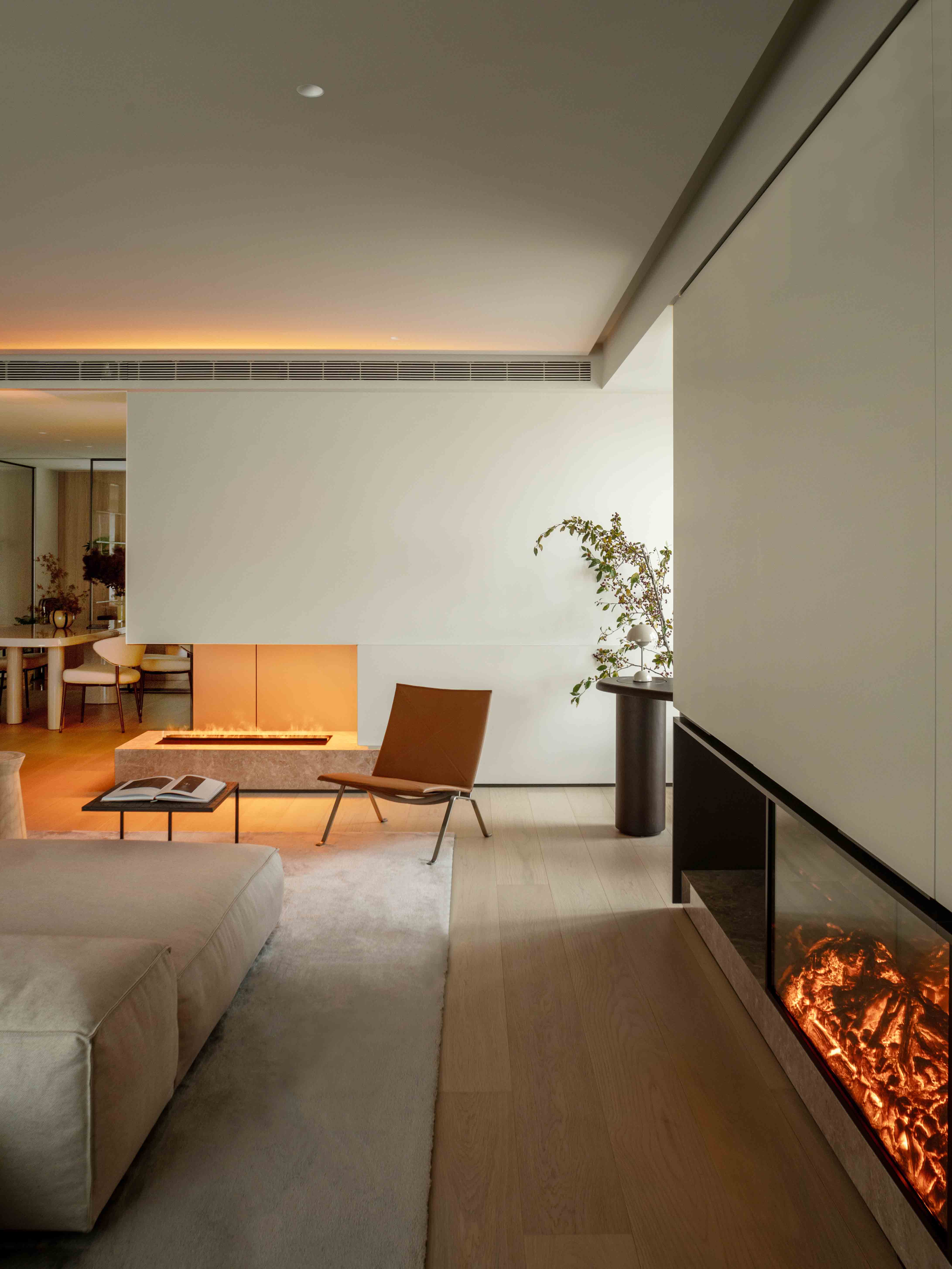 在客厅的一隅,一座壁炉安静伫立,其内跃动的火光成为空间的视觉锚点。它不仅驱散了物理的寒意,更以一种无声的姿态,将温馨感与归属感聚拢于此,奠定了整个家安宁祥和的基调。