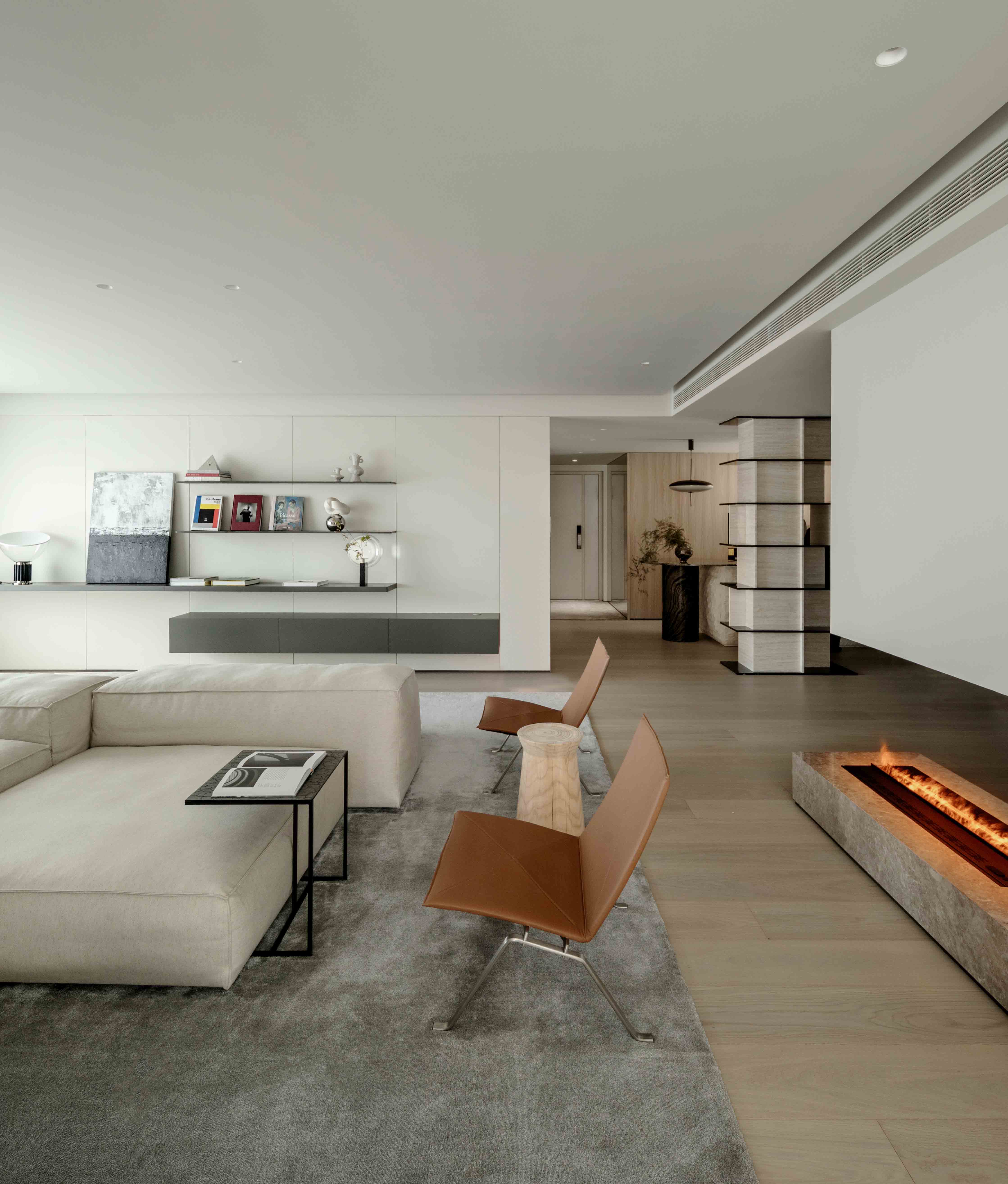 空间的主色调,源自对永恒的思考。我们以黑、白、灰为沉静底色,褪去一切浮华,再点缀以温润的木色。这不仅构建了一种经得起时间考验的优雅与高级,更让家成为一个能包容未来生活的、富有温度的“时间容器”。